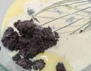 Grind the poppy seeds finely poppy seed grinder or a mortar. Pour the poppy seed then with 180 ml of hot water and mix well. Let cca.10 minutes to cool.
