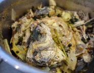 I just got the remains of fish from two fishermen today. I not only had more than 2 liters fish stock but also meat for fish cakes. And because my freezer is already full, I also learned to sterilise my own stock. Now I can enjoy our own products in the cold days.