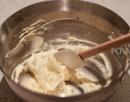 1. Tmavé cesto miesim tak dlho, až sa leskne ako vidieť na obrázku nižšie, a kým nie je elastická natoľko, že ak do nej vtlačím prsty, cesto ostáva elastické a lesklé aj v jamkách po prstoch.