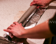 Pomaly zvinieme. Ničím sa nepodsypáva. Zabalíme do alobalu a necháme v chlade aspoň 3 hodiny.