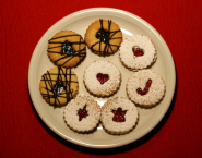 Hotové koláčiky môžeš postriekať roztopenou čokoládou, alebo vrchné časti pred spájaním do dvojíc posyp len práškovým cukrom.