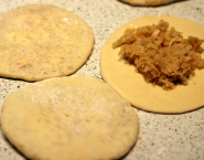 Každý bochník rozvaľkaj na kruh s priemerom cca.16-20 cm. Ak sa cesto trochu prederaví, to nevadí. Každý kapustník peč na suchej platni sporáku z oboch strán. Upečené poukladaj na dosku jeden na druhý a prikri utierkou, aby nevychladli.