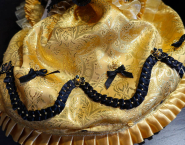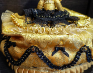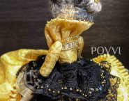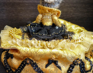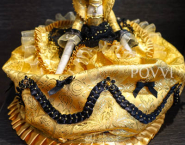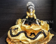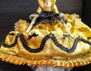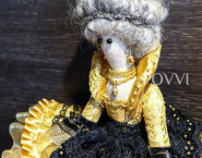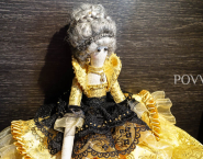 Pompadour is dressed in gold; is 50 cm tall and has hair of original sheep wool.