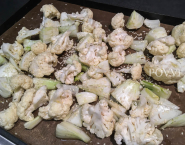 Vo väčšej mise zmiešaj spolu olej, korenie a soľ a pripravený karfiol aj fenikel v ňom vyváľaj, až budú všetky kúsky pokryté olejom. Zeleninu rovnomerne rozlož na pripravený plech a posyp bielym sezamom a feniklovými semienkami. Potom vlož plech do rúry a zeleninu v nej peč počas 20 minút, alebo až začnp kúsky zospodu aj na okrajoch karamelizovať.