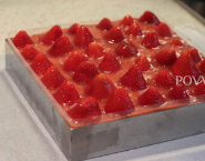 Neem de gemarineerde aardbeien uit de marinade, laat uitlekken en zet voorzichtig op de crème in de taart ring. Als alle aardbeien op de taart zijn, plaats ze voor een uur in de diepvriezer. Na een uur neem de taart uit de vriezer en zet op het karton. Versier de taart naar wens, plaats in een doos en bewaar tot gebruik in de koelkast.