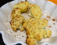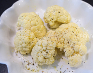Spuit bloemkool met olijfolie op een groot bakplaat. Geur met zout en peper. Bak 20-25 minuten, tot de bloemkool zeer zacht is. Laat iets afkoelen.