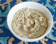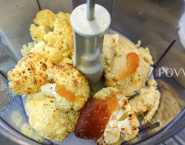 Combineer geroosterde bloemkool, tahini, citroensap, honing en knoflook in een keukenrobot. Proces tot bijna glad. Controleer op kruiden en breng alles op smaak met zout en peper. Voeg een eetlepel olijfolie toe en verwerk opnieuw tot het glad is. Blijf olijf toevoegen, ongeveer een theelepel per keer tot u de gewenste consistentie bereikt.