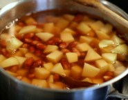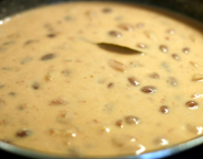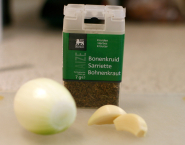 Giet de witte of gevlekte bonen met water de dag ervoor. De volgende dag kook de bonen in het water. Maak van het vet, de bloem een roux, voeg de ui en geperste knoflook, bak even samen en giet over met de room. Breang aan de kook. Als de bonen en aardappelen gaar zijn, voeg het roux toe en breng op smaak met zout, laurierblad, bonenkruid, een beetje suiker en azijn.
