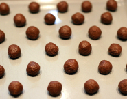 Meng en kneed alle ingrediënten met de hand tot een homogeen deeg. Rol van het koude deeg bolletjes van ongeveer 8 gram en leg ze met voldoende tusssenruimte op een bakplaat. Plet elk bolletje zodanig met een vork dat de tanden van de vork een patroon achterlaten in het deeg. De koekjes worden tijdens het bakken groter. Bak ze 12-15 minuten op 160°C.