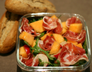 Vervang de Parmaham met een andere, maar wel een rouwe ham. Je mag de ham voor het serveren ook bakken tot knapperig. Slaatje krijgt dan van nog een tikje meer. Het best is om de cantaloupe (cavallion) meloen maar je mag rustig ook een andere gebruiken.