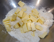 Meng de boter, bloem en parmezaanse kaas samen. Breng op smaak met zout en rozemarijn en kneed totdat je een deeg vormt. Wikkel het deeg in huishoudfolie en koel hem 30 minuten in de koelkast.
