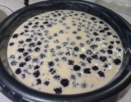 Vet een ovenschaal. In een kom, meng de suiker en de eieren, voeg de bloem en zout en meng met melk erbij. Je krijgt een licht beslag en als een pannenkoek beslag. Bedek de bodem met de braambessen en giet het mengsel over hen.