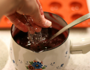 Giet het mengsel in de ingevette vorm en laat minstens een nacht, bij voorkeur 3 dagen afkoelen. Om gelei van de vorm krijgen, zet een schaal bovenop de vorm en draai alle onderste boven zodat gelei gemakkelijk loskomt.