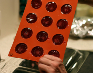 Zeef cranberry mengsel door een fijne zeef in een grote kom en druk de vruchten echt sterk, zodat alle sappen uitkomen. Voeg de geweekte gelatine toe en roer ze in gelei tot ze opgelost is. Voeg uiteindelijk resterende 1/4 glas port toe.