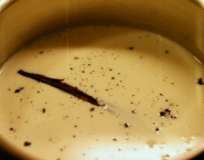 Doe het vanillestokje met de melk en suiker in een pan en verwarm op een laag vuur tot tegen de kook aan. Neem de pan uit het vuur en laat de mlek 15 minuten trekken. Haal het stokje uit.