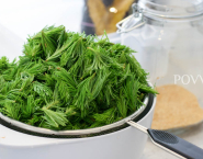 Spoel vers geplukte, jonge (lichtgroene) scheuten van de dennenboom, in de vrije natuur of gewoon in de tuin geplukt. De jonge scheutjes mogen niet volgroeid zijn (begin en tot rond 15 mei). Neem een steriele bokaal (confituur, conserven) met een goed sluitend deksel. Leg eerst een laag suiker, vervolgens een laag dennenscheuten. Herhaal dit tot de bokaal vol is, eindig wel met een laag suiker. Druk alles zeer goed aan.