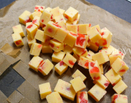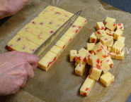 Snijd de fudge na het afkoelen en verpak apart of serveer op een mooie serveerbord.