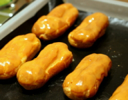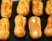 Bak eclairs krokant af op 220°C (hete luchtovens -20°C) gedurende 20 minuten. Steek op het einde van het bakken (ongeveer na 15 minuten)een spatel in de deur naar een kier en bak nog 5 minuten.