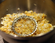Vajíčko postrúhaj na strunke, alebo ako jablká. Pridaj k nim nátierkový jemný tvaroh a maslo a dobre preniešaj. Dochuť soľou a korením.