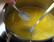 Heat the butter with the honey is melted in a small pan until the butter. Now add the milk (I used quiet half whole milk) and cook to about 37°C.