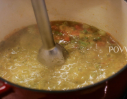 Serve the soup with diced tomatoes and onions in it.