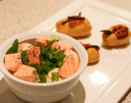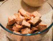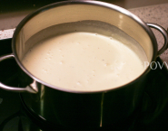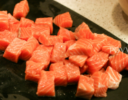 Cut the salmon into large square pieces. Bring the fish stock to the boil in a saucepan and add the pieces of salmon. Allow 15 minutes yarn.
