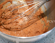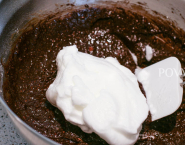 Melt butter together with the chocolate. Beat the egg yolks with the brown sugar and mix with the chocolate. Add the hazelnuts and flour and mix well. Beat the egg whites and stir well into the mixture. Ready.