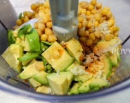 Pulse chick peas, avocado, olive oil, lemon juice, and garlic in a food processor until smooth, about 2 minutes. Season with salt, pepper and paprika to taste, and pulse everything again for about 1 – 2 minutes longer.