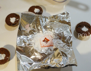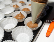 Pour the batter into the pastry bag and pour it into mini muffin paper tins. Add two pieces of chocolate in the butter and bake the cookies about 20 minutes in a preheated oven at 175°C (fan oven 125°C).