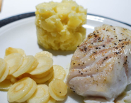 Serve the cod on bread with potatoes and fried chervil root.