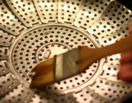 Lay the first dumpling to the power source, put the lid on and let steam for 15 minutes over medium heat. After steaming the dumpling let cool on a greased wire rack. Now repeat the procedure with the second dumpling.