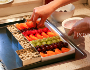 Wash all fruits under running water and drain. Then remove the crowns of strawberries, cut the leftover stalks of gooseberries and pitted the remaining fruit.