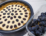 Put the batter into greased baking form, lay on top of the butter the grapes and bake in preheated oven for 45-55minutes.