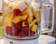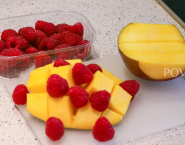 Tana indicated in her recipe ratio of 300 g of banana to 1 kg of desired fruit. I wanted to do first just some test, so I modified the recipe and used also a lemon juice, to preserve the color of the fruit after drying. Mango is my favorite fruit, raspberries too, so I could not miss it.