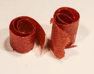 I first pureed all the ingredients in a blender and then spread the result in a thickness of 2 mm on baking sheet covered with teflon foil. Later I learned from Tana, the mix have to be. 4 mm thick before drying. But there is nothing wrong with it. Instead of the normal 9 hours of drying to the mass of 4 mm in thickness, I dried the leather in an oven preheated to 80°C only for 6 hours.
