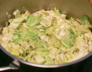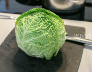 Finally ready the savoy cabbage: fry the onion until translucent in a deeper pot. Add chopped savoy cabbage and cook even baking. Add some salt and pepper and mix well together. Then add a little water and simmer the cabbage, stirring occasionally until al dente.