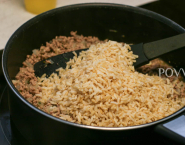 I had some whole grain rice from the day before and did not throw it away. So I added it also to the meat. But you do not have to do it.