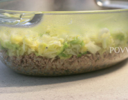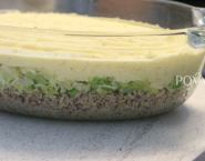 Grease the pan with butter or oil. Place the first layer of the meat inside it. Put bearing the coat of savoy cabbage and finally the mashed potatoes.