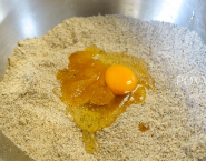 - Now I do the mass in the kitchen robot and I add the honey and the eggs to it.