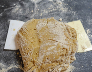 Eventually I use the spatulas on the kitchen foil to wrap it in and so the dough goes into the fridge and develop taste. The dough must rest for at least one hour, best one night. But if you leave it there for five days, that does not hurt either – honey is a natural preservative so it certainly will not be bad.
