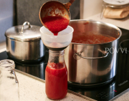 Mix it all in the mixer, then put through a sieve and put back to the boil. Allow to thicken and pour into clean bottles. Put them tightly and let cool.