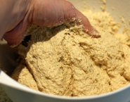 Work the flour and salt through it, so that a weak, somewhat sticky dough – it will feel stickier than dough of wheat flour. If the dough with your hands or the bowl, add some flour. There are dry crumbs in the bowl or the dough feels stiff and dry, add some water.
