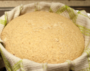 Place the dough on a work surface and knead for 10 minutes solid. Cover with a damp cloth, an inverted bowl or a sheet of plastic wrap and let rest for 15 minutes. Shape the dough into an oval loaf of 23 cm long and put it on oath dusted baking sheet. Slide the tray into a large plastic bag or cover it gently with a damp cloth. Let the dough rise until the volume has almost doubled, about 1-2 hours.