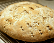 Sprinkle the top of the bread with some oatmeal. Then cut with a kitchen scissors a zigzag pattern in the top. Let the bread bake about 35 minutes until light golden brown and sounds hollow when you tap the bottom.