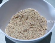 Gently fold in the ground hazelnuts and sugar. Fold only until the ingredients are incorporated.