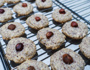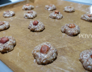 Top each cookie with a hazelnut and gently press the hazelnut into the top of the cookie.
