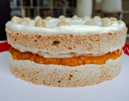 Meringues can from 2 hours before serving his full. Whip the cream to soft peaks and spread your one meringue with the cooled apricot mixture, then half of the whipped cream. Place the second meringue gently on top now. Spread the remaining cream on top and decorate the cake along the border with whole hazelnuts.