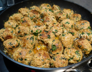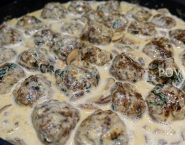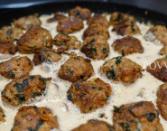 Shape the batter into medium balls and set them aside. Heat the oil in the pan and fry the balls from all sides. Take them after baking the pan and keep them warm. Now fry the onions and garlic in the pan till translucent. Add the mushrooms. Bake until the mushrooms become soft and add the cream. season everything with pepper and salt. Finally add the balls in the sauce and let everything warm up well together.