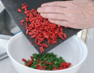 Who can not live without meat, add a Chorizo in rings. But the salad will be delicious also with ham.
