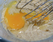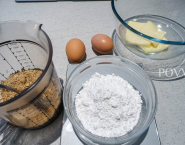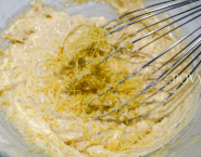 Mix softened butter until creamy. Add the mixture of walnut with icing sugar, lemon zest, eggs and flour mixed with baking powder and mix until smooth batter.